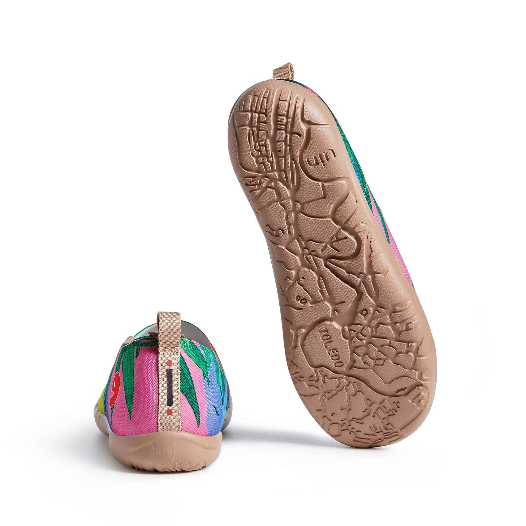 Featuring an artistic 3D map of Toledo, the slip-proof sole provides excellent grip.