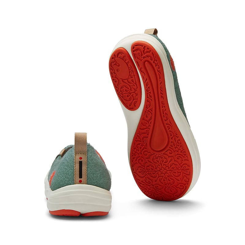 Artistic sole patterned with the curved coastal features and traditional floral patterns of the Andalusian region. Non-slip rubber areas provide excellent grip for walking.